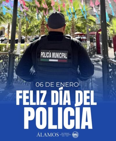 En el marco del Día del Policía, que se conmemora este 6 de enero, el Ayuntamiento de Álamos realizó un reconocimiento a las y los elementos de seguridad pública que diariamente desempeñan su labor con vocación de servicio y compromiso con la legalidad.