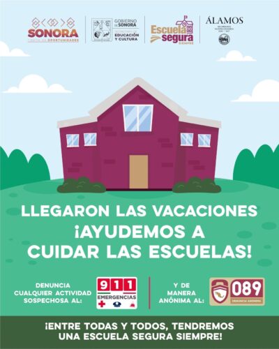 El objetivo es proteger las instalaciones escolares durante el periodo vacacional. Les pedimos por favor reportar cualquier actividad sospechosa. Súmense activamente al cuidado de los espacios escolares.