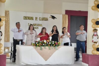 La comunidad de La Aduana se llenó de alegría y emoción con la ceremonia de graduación de las niñas y niños de las Escuelas Telesecundaria 31, la primaria Leona Vicario y del preescolar La Estrellita.