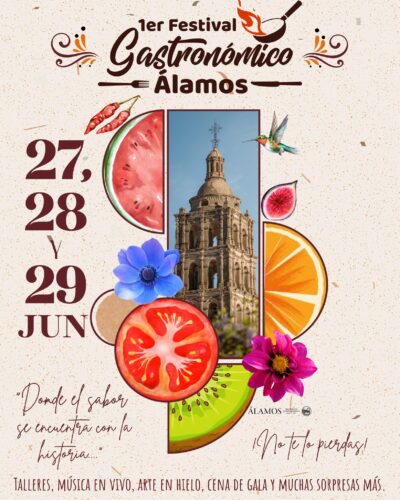 El H. Ayuntamiento de Álamos tiene el honor de invitarte a el “1er Festival Gastronómico Álamos 2025”, que se llevará a cabo los días 28 y 29 de junio.