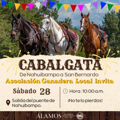 El próximo 28 de marzo se llevará a cabo la gran cabalgata que recorrerá el trayecto de Nahuibampo a San Bernardo, con salida a las 10:00 a.m. desde el Puente de Nahuibampo.
