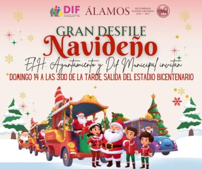 El Ayuntamiento de Álamos y DIF Municipal te invitan. . ¡Estamos listos para el Gran Desfile Navideño, no te lo puedes perder! D