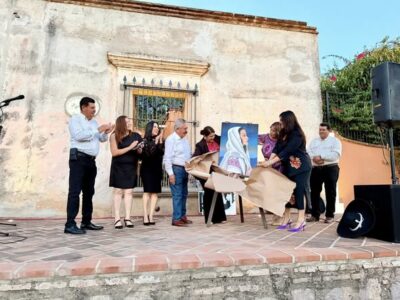 La pintora Silvia Millán develó la obra “Herencia Viva”, la cual donó a esta ciudad. Se trata de una pieza realizada en acrílico sobre lienzo que, a partir de ahora, formará parte del acervo del Museo María Félix.
