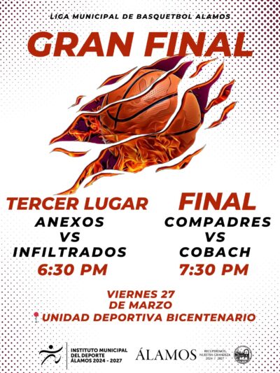 Este viernes 27 de marzo se llevará a cabo la gran final de basquetbol en la Unidad Deportiva Bicentenario, a partir de las 7:00 pm.