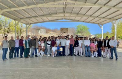 Lo acompañaron la Directora de Educación, Virginia Alcaraz; el Director del Cecytes, Mtro. Héctor Hugo Cervantes; el Director de Obras Públicas, Ing. Alberto Rojo; la Secretaria Particular, Mtra. Fátima Valenzuela; el Cobanaro Toribio Yocupicio; el Dr. Hirbin Quintero y la enfermera Marissa Cota.