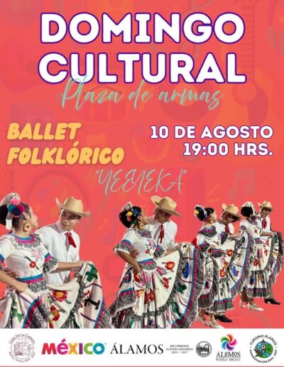El H. Ayuntamiento de Álamos invita a la ciudadanía a disfrutar de una tarde cultural llena de baile, tradición y música en el marco del Domingo Cultural, que se realizará en la Plaza de Armas a las 19:00 horas.