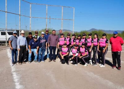 Como parte de la inauguración se realizó un juego amistoso de softball entre el equipo Las Alameñas y funcionarios municipales.