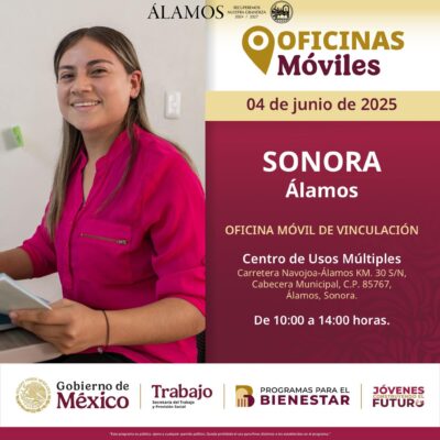 El próximo miércoles 4 de julio, el programa federal “Jóvenes Construyendo el Futuro” instalará sus oficinas móviles de vinculación en las instalaciones del Centro de Usos Múltiples (CUM) de Álamos, en un horario de 10:00 a 14:00 horas.