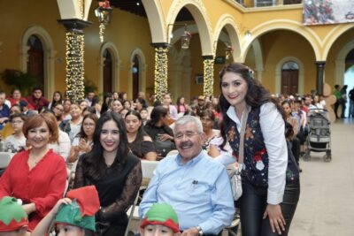 Niñas y niños de nivel preescolar, provenientes de distintos planteles del municipio, ofrecieron con entusiasmo variadas presentaciones de baile en el escenario de Palacio Municipal durante la tradicional posada navideña.