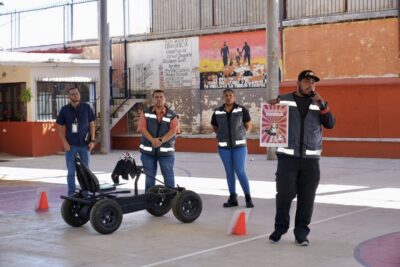 Como parte de las actividades, se realizó una dinámica interactiva en la que las y los estudiantes condujeron un pequeño carrito a través de un circuito utilizando lentes que simulaban los efectos del alcohol, permitiendo reflexionar de manera práctica sobre los peligros de manejar en estado de ebriedad.